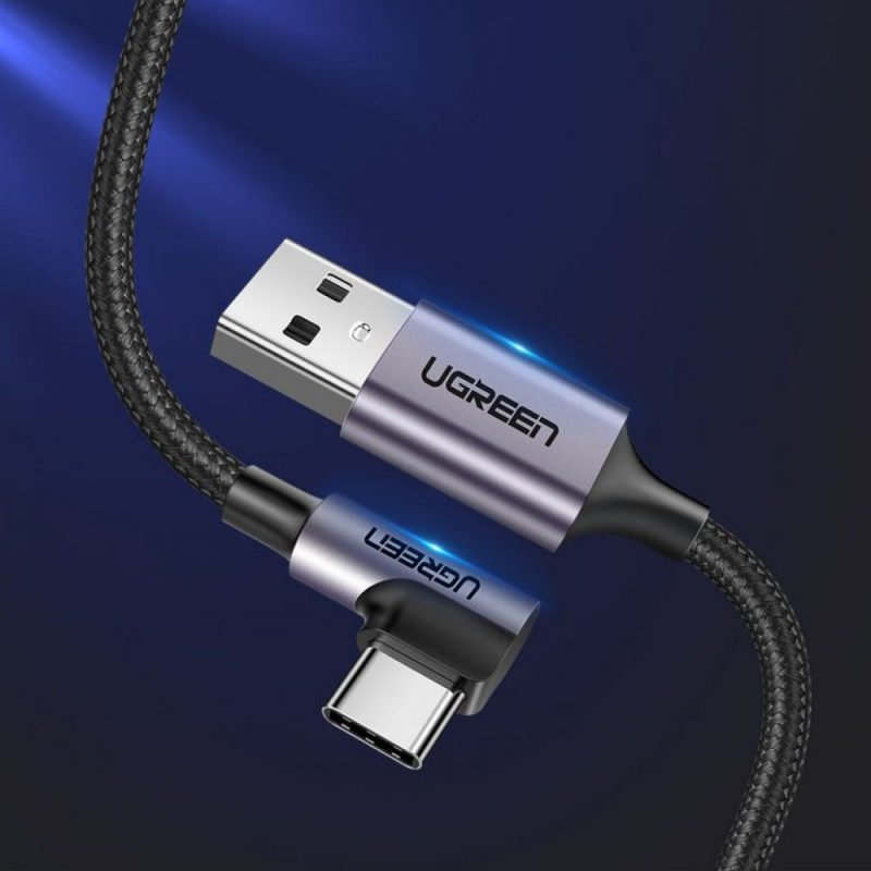 USB-A - USB-C Kábel UGREEN US284 Szögletes, 18W, 3A, 0.5m, Szürke