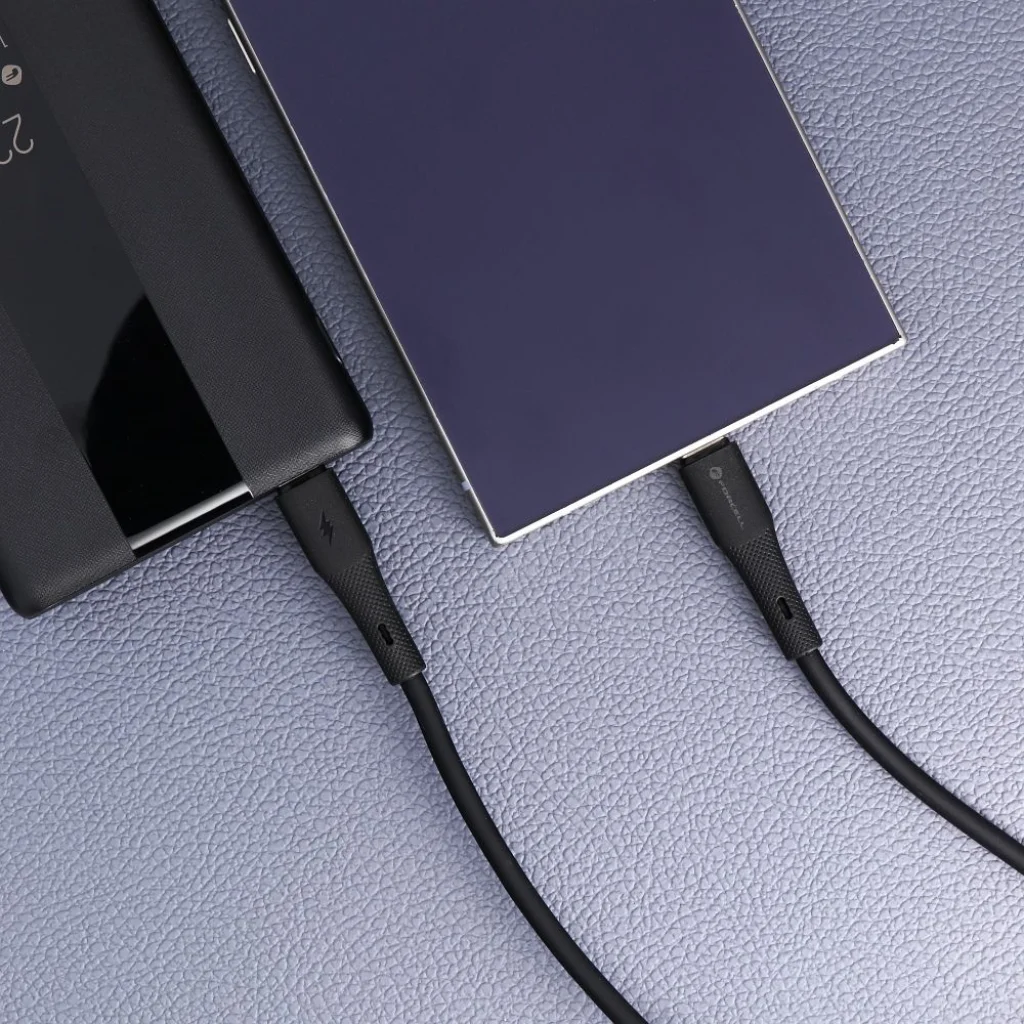 Univerzális USB-C kábel 100 W-os nagy teljesítménnyel, okostelefonok, tabletek és laptopok gyors és biztonságos töltésére tervezve. Puha, kellemes tapintású és gubancmentes szilikonból készült, jelentősen növelve a mindennapi használat kényelmét.
