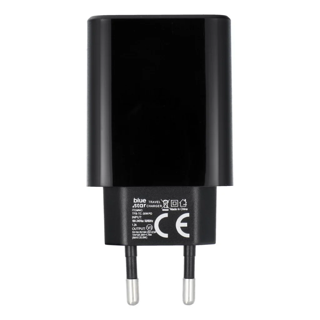 USB-C hálózati töltő adapter Blue Star QC4.0 PD 3A 35W TFB-TC-35WPD fekete