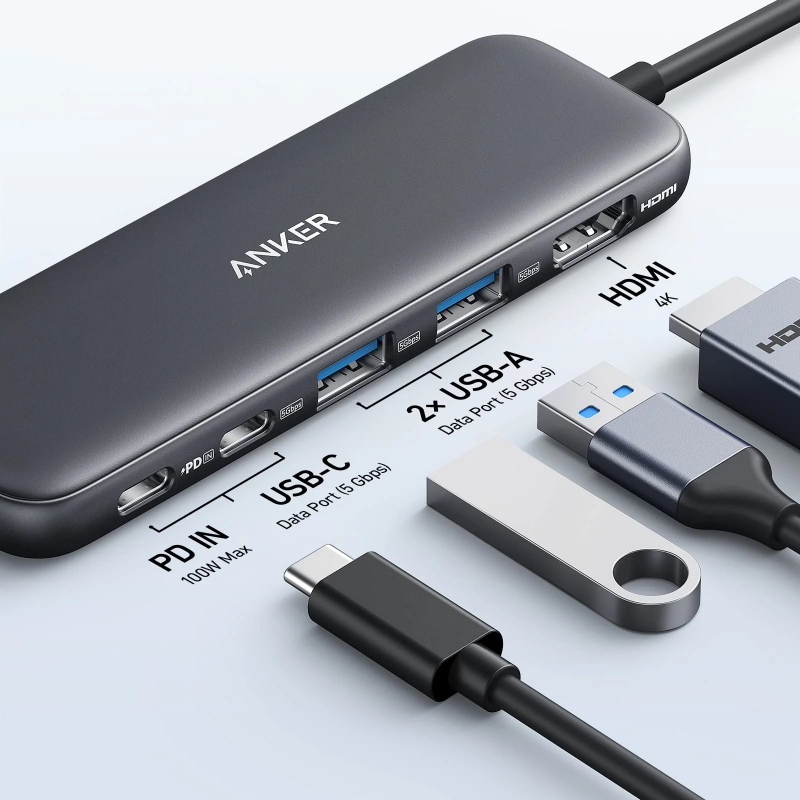 Többé nem kell kompromisszumot kötnie a portok számát illetően. Az Anker 332 hub kibővíti laptopja egyetlen USB-C portját egy komplett rendszerré, amely minden csatlakoztatási igényét lefedi: