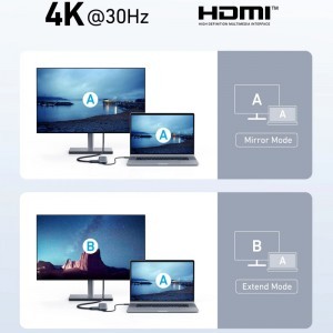 Merüljön el a részletekben! A beépített HDMI porton keresztül könnyedén csatlakoztathat egy külső monitort vagy projektort, és élvezheti a kristálytiszta képminőséget akár 4K@30Hz felbontásban. Akár prezentációt tart, filmet néz, vagy több feladatot végez párhuzamosan, az Anker 332 Hub támogatja a tükrözött (Mirror Mode) és kiterjesztett (Extend Mode) kijelző módokat, így maximális rugalmasságot biztosít munkájához és szórakozásához.