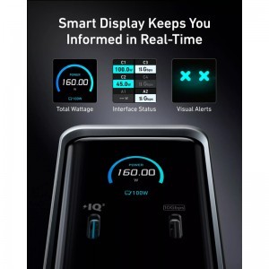 A 160W összteljesítményű kimenettel akár négy eszközt is tölthetsz egyszerre, kivételes hatékonysággal. Minden USB-C port önmagában is támogatja a 100W teljesítményt, míg az USB-A portok 12W-ot biztosítanak, garantálva a gyors és hatékony töltést a csatlakoztatott eszközök számára.