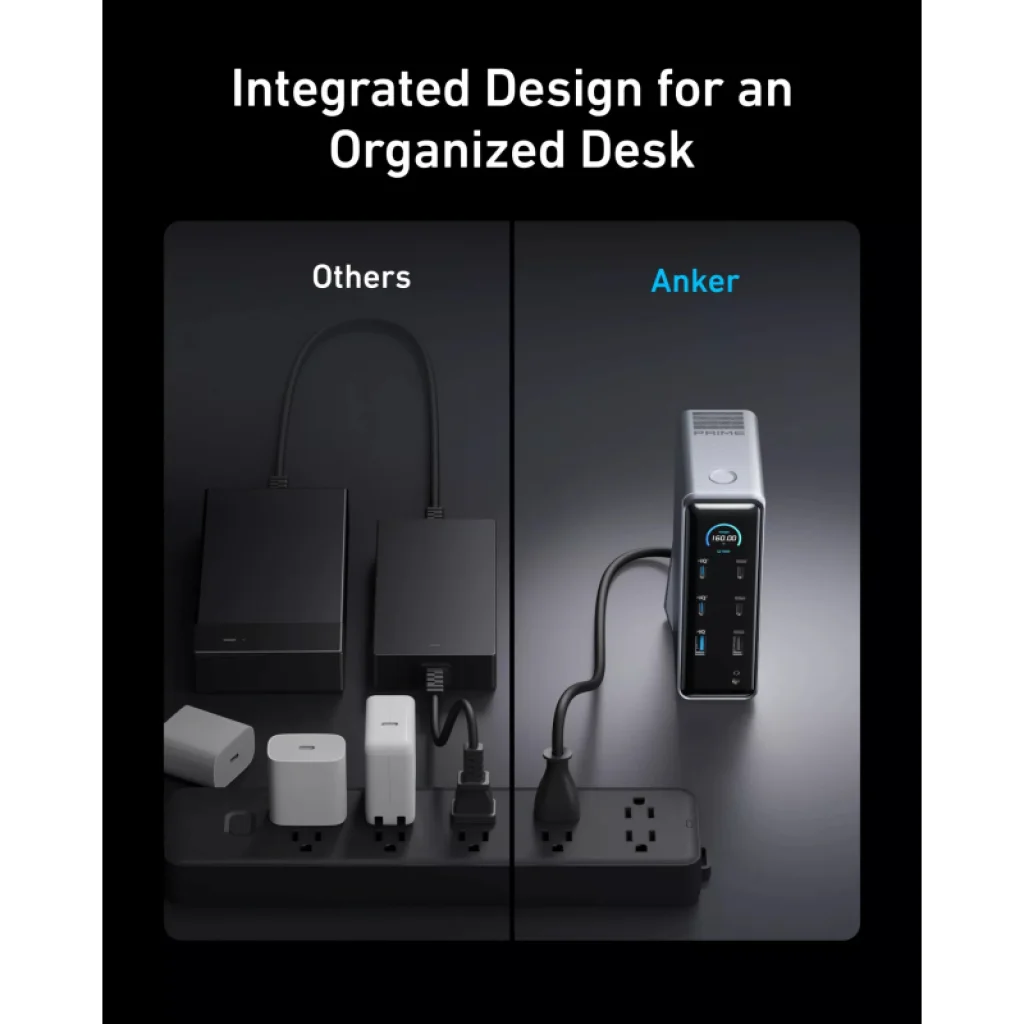 Emeld magasabb szintre a munkaállomásodat az Anker Prime 737 dokkolóállomással, melyet a teljesítmény, a stílus és a maximális csatlakoztathatóság jellemez. A karcsú, függőleges kialakítás magában foglal egy beépített GaN AC-DC teljesítménymodult, amely helyet takarít meg, miközben rendkívül erős funkcionalitást nyújt. Felejtsd el a rendetlen asztalt és a külső töltőadaptereket – az Anker Prime 737 elegáns, integrált megoldást kínál, tisztán és rendezetten tartva a teret.