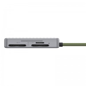 Az olvasó támogatja két kártya egyidejű olvasását: SD + SD vagy SD + TF. Ez a funkció felgyorsítja az adatok adathordozók közötti másolását, és egyszerűsíti a nagy multimédiás projekteken végzett munkát.