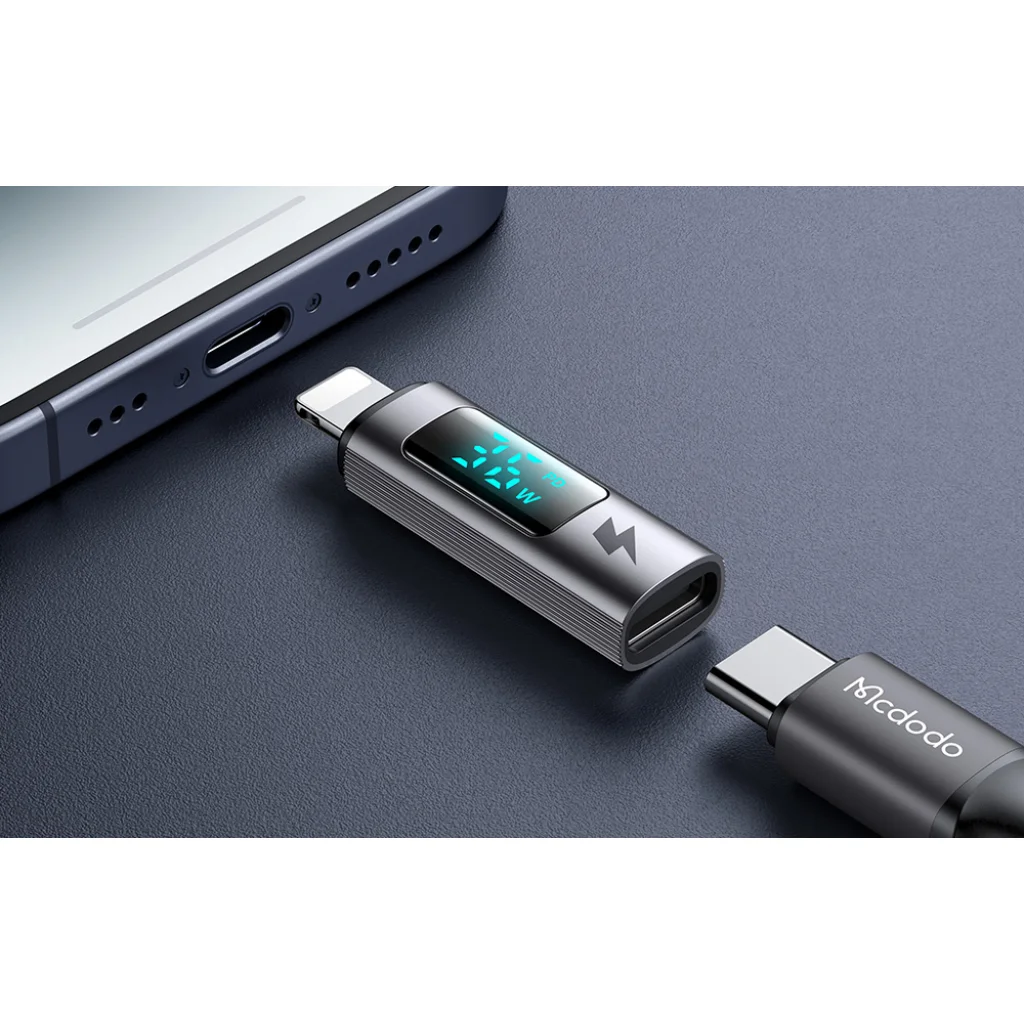 A Mcdodo OT-6100 adapter ideális megoldás Apple eszközök tulajdonosai számára. Lehetővé teszi a Lightning porttal rendelkező eszköz töltését USB-C kábellel. 36W teljesítménnyel rendelkezik, amely gyors töltést biztosít az iPhone 8-14 szériához, és akár 480 Mbps adatátviteli sebesség, amely hatékony fájlmegosztást garantál. Kis kijelzője valós idejű információkat nyújt a töltési teljesítményről és egyéb adatokról. Kompakt méretei (37,7 x 11,3 x 7,56 mm) és mindössze 3 g súlya ideálissá teszik az úti használatra.