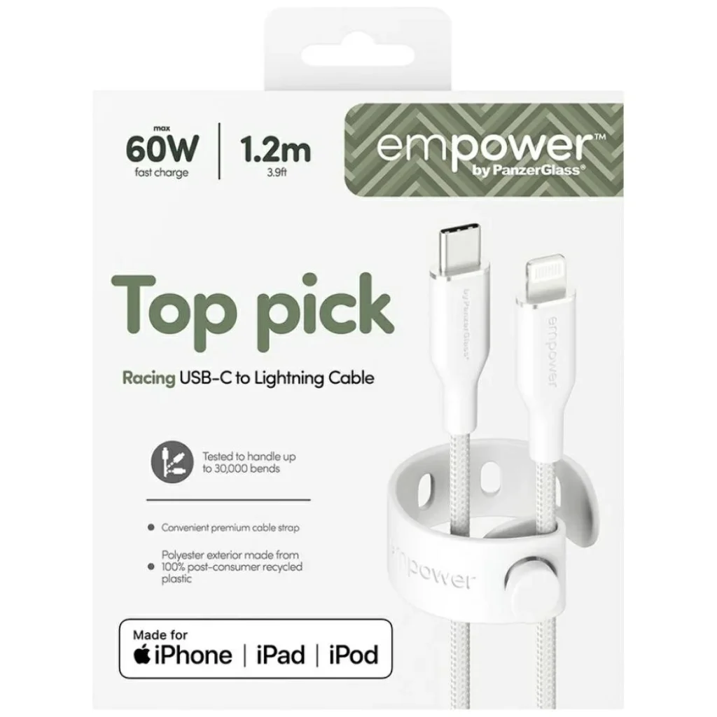 Az Empower Racing USB-C - Lightning kábel gyors és megbízható megoldás Apple eszközök felhasználói számára. Támogatja a 60W-ig terjedő töltést USB Power Delivery technológiával, így lehetővé teszi az iPhone, iPad és más kompatibilis készülékek gyors energiaellátását.