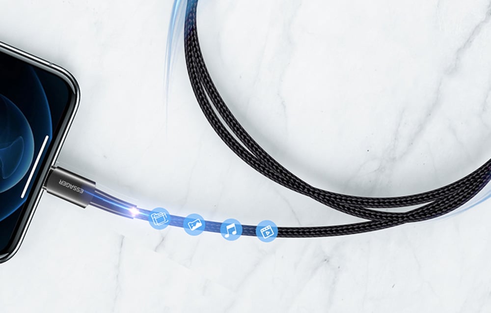 Az Essager USB-C to Lightning kábele biztonságos és stabil töltést nyújt, amelynek maximális teljesítménye 27W. Lehetőség van fájlok átvitelére is, akár 480Mbps sebességgel. Egy praktikus LED kijelző tájékoztat a töltési folyamatról, és megkönnyíti a csatlakoztatott eszközök éjszakai megtalálását.