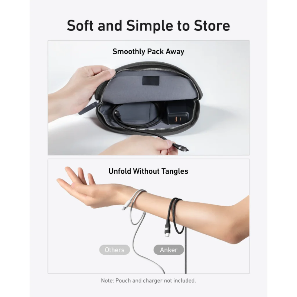 Az Anker USB-C - USB-C adat- és töltőkábel ötvözi a sebességet, a tartósságot és a fenntarthatóságot egyetlen praktikus kiegészítőben. Ez a nagysebességű kábel 480 Mbps adatátvitelt és nagy teljesítményű töltést kínál, kompatibilis USB-C telefonokkal, tabletekkel és laptopokkal. Lágy, újrahasznosított nejlonból (PCR) készült fonott szerkezete kivételes tartósságot biztosít, míg a környezetbarát, műanyagmentes csomagolás minimalizálja a környezeti hatásokat. A praktikus kialakítás részét képezi egy szilikon kábelrendező, amely megkönnyíti a csévélést, tárolást és használatot, gyakorlatilag gubancmentesen.