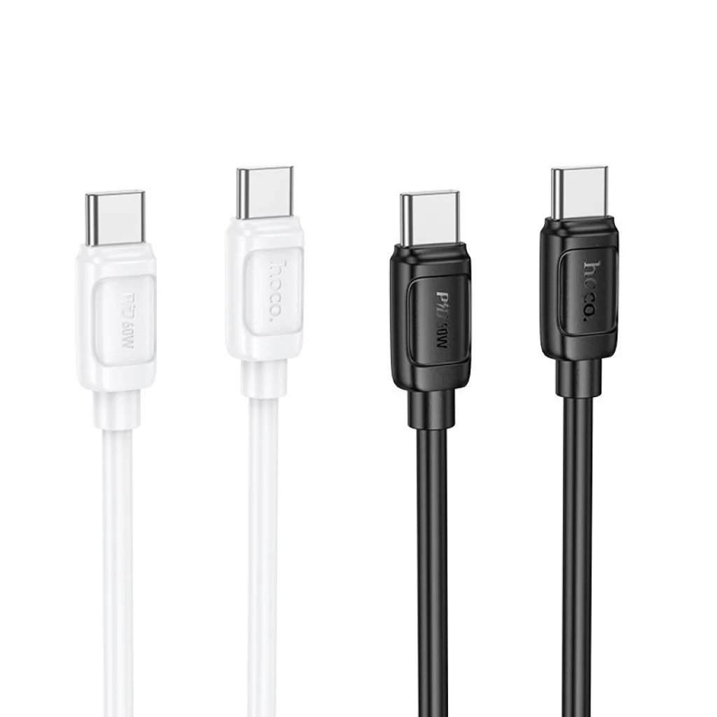 Gyors töltés USB-C - USB-C kábel a Hoco-tól (X115). Lehetővé teszi a gyors töltést 240 W-ig és az adatátvitelt. Támogatja a Power Delivery protokollt, és magas teljesítményének köszönhetően lehetővé teszi laptopok töltését. Töltse gyorsan még a nagy készülékeket is! A kábel kompatibilis a PD protokollal és másokkal, így számos különböző eszköz áramellátására alkalmas, amelyek akár 240 W teljesítményt igényelnek, beleértve a laptopokat is. A gyors töltés azt jelenti, hogy a telefon (vagy más eszköz) akkumulátorát rövid idő alatt teljesen feltöltheti. Elsődleges a biztonság: a kábel csatlakozóinak hőmérséklete állandó szinten marad, így nem kell aggódnia a túlmelegedés és az akkumulátor károsodása miatt - akkor sem, ha használja az eszközt töltés közben. A hosszú, 1 m-es kábel kényelmes használatot biztosít a okostelefon számára töltés közben. Műszaki adatok: Teljesítmény: 240 W; Áramerősség: 5 A; Csatlakozók: USB-C – USB-C; Hossz: 1 m; Anyag: PVC; Súly: 27 g; Gyors töltési technológiák támogatása: OPPO VOOC gyors töltés, vivo gyors töltés, Huawei FCP / SCP, Samsung Advanced Charge, Xiaomi Mi Turbo Charge, Qualcomm QC protokoll, hazai UFCS egyesített gyors töltés és mások; Egyéb: laptop támogatás akár 240 W-ig (48 V / 5 A).