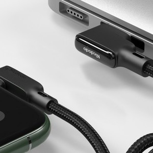McDodo CA-7300 1.8m derékszögű USB to Lightning kábel (fekete) Élvezze a kényelmes és gyors töltést a McDodo CA-7300 segítségével. A kábel maximális árama akár 3A, a derékszögű kialakítás és a 1.8 méteres maximális kábelhossz lehetővé teszi, hogy kényelmesen használja okostelefonját töltés közben. Segítségével egyszerre tölthet és adatokat is átvihet a telefonjára. Tartós kialakítás A 1.8 méteres rugós kábel lehetővé teszi, hogy kényelmesen használja telefonját töltés közben. A nylon fonat a lehető legtartósabbá teszi a kábelt, nem kuszálódik össze, az erősített végei pedig ellenállnak a hajlításnak és sérüléseknek. Korlátlan kényelem A kétoldalas USB csatlakozó lehetővé teszi, hogy kényelmesen csatlakoztassa a kábelt a töltőhöz. A LED kijelző segít megtalálni telefonját éjjel, megjelenítve a töltöttségi szintet. Ezenkívül a McDodo CA-7300 kábel kompatibilis az iPhone 11/12/13 szériájú modellekkel. Gyors adatátvitel A kábel rézmagja megvastagodott, így még gyorsabbá teszi a töltést és az adatátvitelt. A McDodo CA-7300 kábellel 480Mbps sebességgel küldhet át fájlokat, miközben tölti telefonját. Biztonságos töltés Ez nem minden a termék előnyei közül. A McDodo kábel továbbfejlesztett intelligens chippel van felszerelve, amely gyorsabbá és biztonságosabbá teszi készüléke töltését. Ez biztosítja, hogy eszköze védve legyen a sérülésektől.