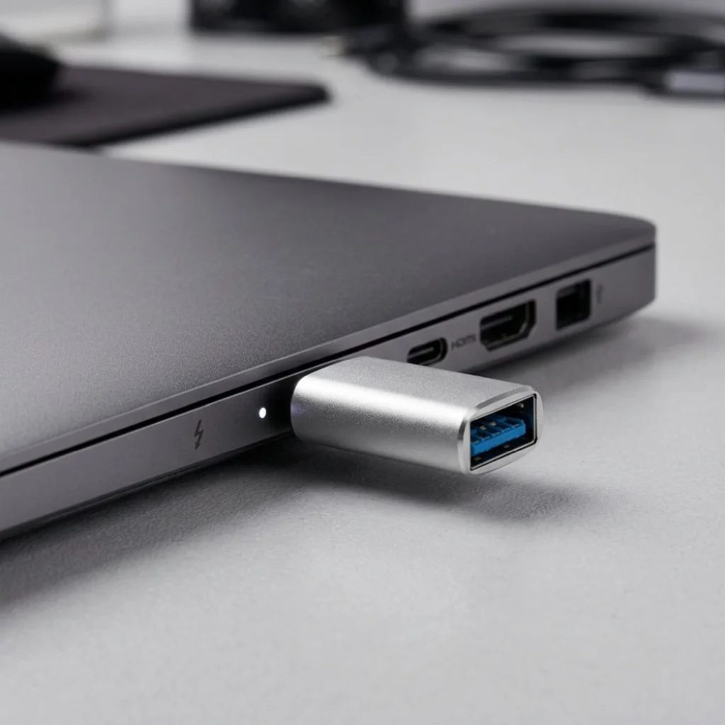 Blue Star – USB Type-C adapter (anya) → USB-A 3.0 (apa)Az adapter lehetővé teszi, hogy egy USB Type-C kábelt USB-A 3.0 porttal rendelkező eszközökhöz csatlakoztasson. Töltést és adatátvitelt biztosít régebbi eszközökkel, például USB-A porttal felszerelt töltőkkel, számítógépekkel vagy power bankokkal. Csatlakozók:Port (anya): USB Type-C – USB-C kábelhezDugó (apa): USB-A 3.0 – az eszközhöz Csatlakozás típusa: USB Type-C / USB-A 3.0