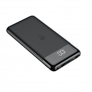 A minimalista, karcsú és könnyű dizájn (mindössze 220 g és 135.5 x 67 x 15 mm méret) révén a powerbank kényelmesen magával vihető bárhová, akár zsebben, akár táskában. A prémium karbon szálas felület nem csak modern és elegáns megjelenést kölcsönöz, hanem jobb tapadást és karcállóságot is biztosít. Az előlapon található intelligens LED kijelző pontosan mutatja a powerbank aktuális töltöttségi szintjét százalékban, így sosem éri meglepetés.