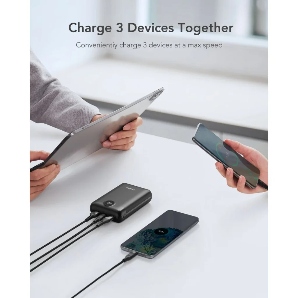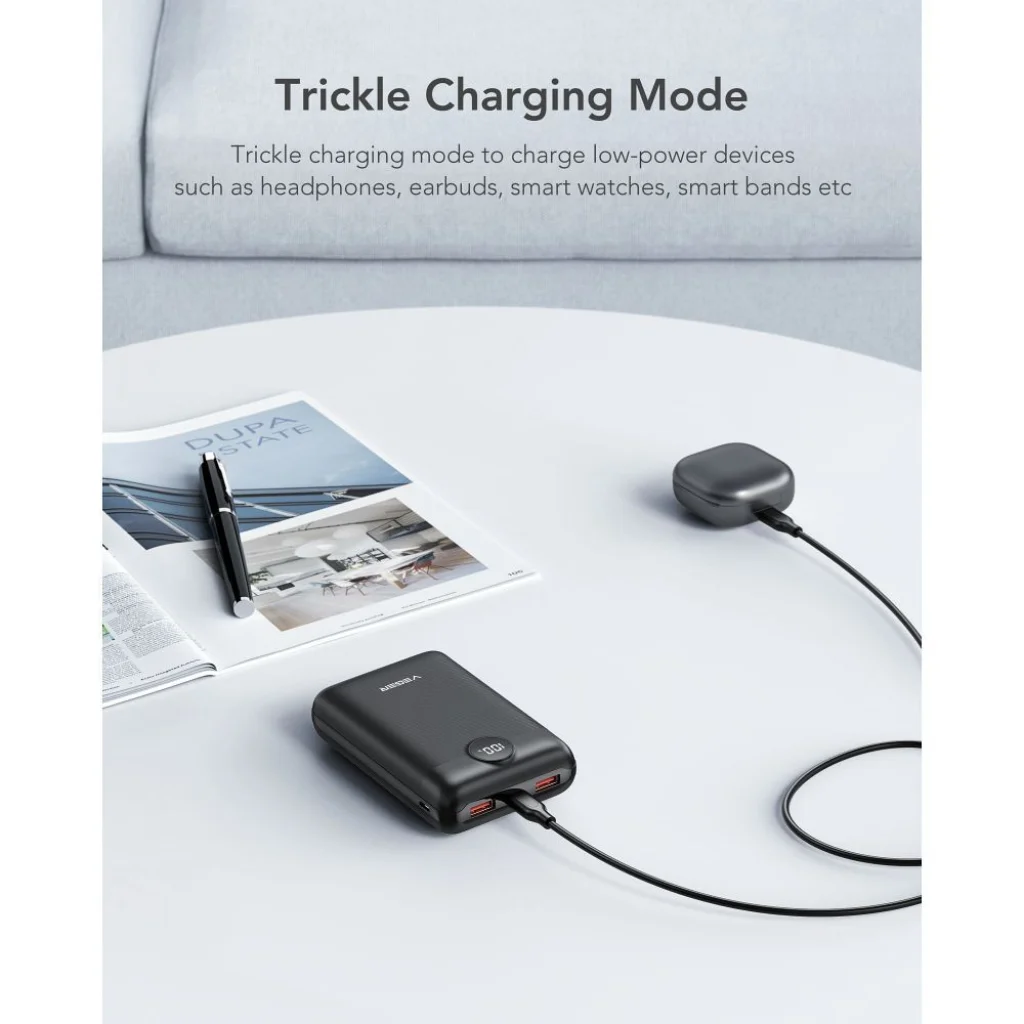 Felejtsd el a portok közötti válogatást! A VEGER S20 powerbank 5 porttal rendelkezik: két USB-A kimenet, egy sokoldalú USB-C bemenet/kimenet és egy micro USB bemenet. Ez lehetővé teszi akár három eszköz egyidejű töltését maximális sebességgel, legyen szó okostelefonról, tabletről, kézi konzolról vagy TWS fülhallgatóról. Ezen felül a Trickle Charging Mode gondoskodik az alacsony fogyasztású eszközök, mint például okosórák, fülhallgatók vagy fitnesz trackerek biztonságos és optimális töltéséről.
