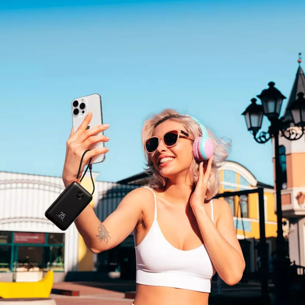 - Tölts egyszerre több eszközt: A beépített USB-C és Lightning kábelek mellett a powerbank további USB-C és USB-A kimeneti porttal is rendelkezik, lehetővé téve akár 4 eszköz egyidejű töltését. Tökéletes, ha megosztanád az energiát barátaiddal, vagy egyszerre töltenéd telefonod, fülhallgatód és okosórád.