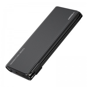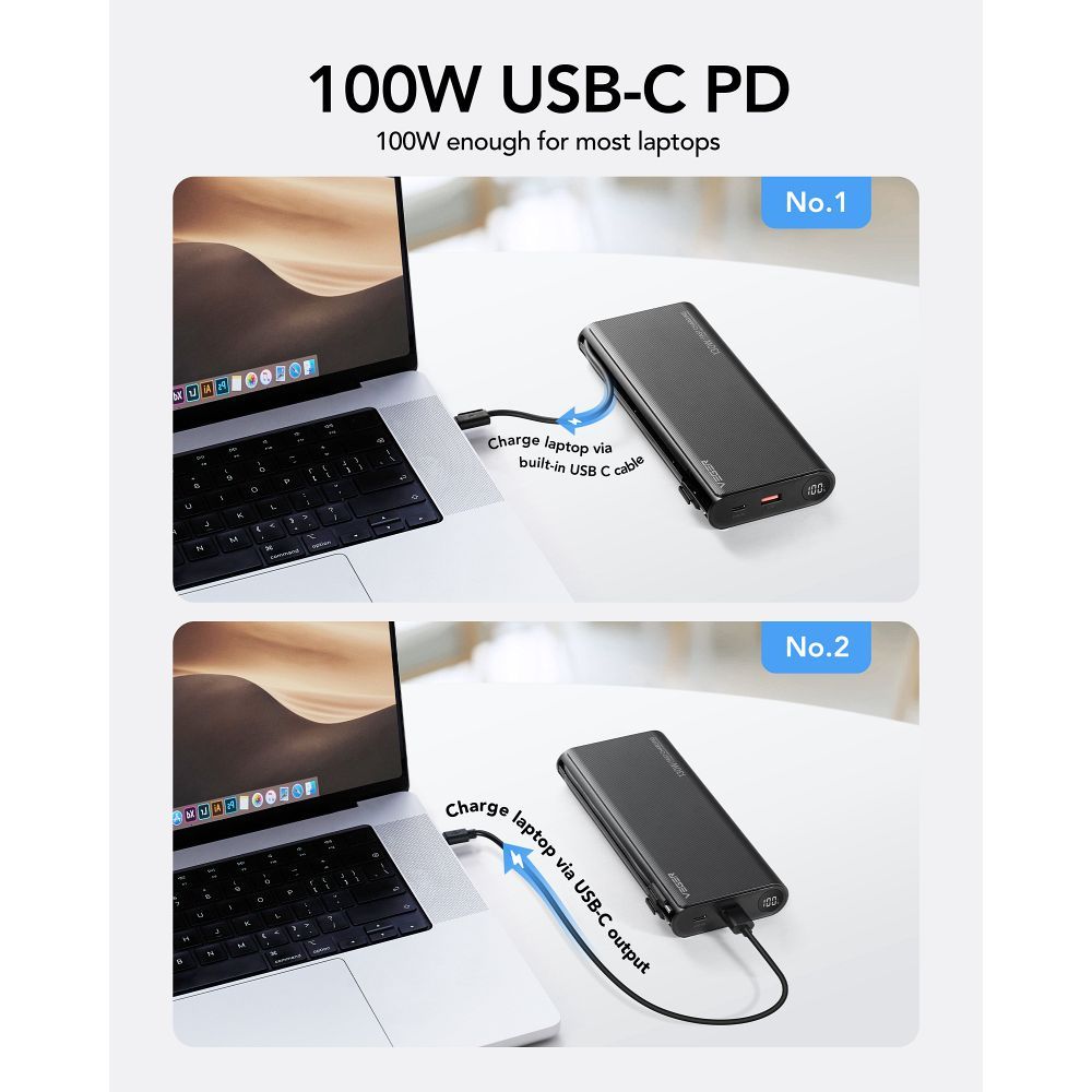 - Mindössze 2 óra alatt teljesen feltölthető, amennyiben egy 60W PD fali töltőt és megfelelő kábelt (akár a beépítettet) használsz. A power bank maximális bemeneti teljesítménye 65W, ami garantálja a gyors újratöltést.