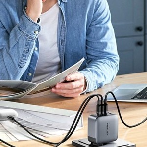 A Vention TZ-FET-EU egy hálózati töltő, amely a GaN V technológiát használja az akár 100 wattos teljesítmény eléréséhez, csökkentett készülékméretek mellett. Egy szabványos 96 W-os töltőhöz képest akár 20%-kal kisebb. Gyorsan képes feltölteni az olyan eszközöket, mint a MacBook Pro (36% 30 perc alatt), iPhone 16 Pro (54%), iPad Pro (45%) és Samsung S24 Ultra (65%). A készülékhez egy strapabíró USB-C-USB-C kábel tartozik, amelynek hossza 1 méter, maximális teljesítménye pedig 100 watt.