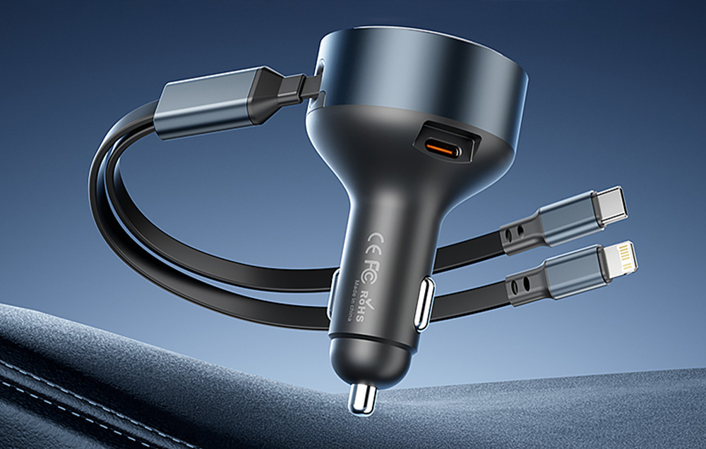 A Vention töltő sokoldalú megoldás három eszköz egyidejű, gyors töltéséhez, ideális 12-24V-os autókhoz. Beépített USB-C és Lightning kábeleivel, valamint egy további USB-C porttal nagyfokú sokoldalúságot kínál, és megszünteti a kusza vezetékek zűrzavarát.