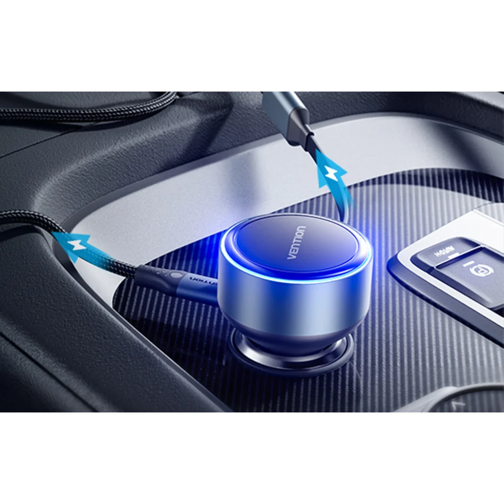 A Vention töltő sokoldalú megoldás három eszköz egyidejű, gyors töltéséhez, ideális 12-24V-os autókhoz. Beépített USB-C és Lightning kábeleivel, valamint egy további USB-C porttal nagyfokú sokoldalúságot kínál, és megszünteti a kusza vezetékek zűrzavarát.