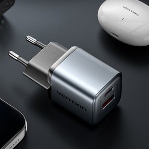A GaN Vention USB-C + USB-A 30W-os töltő egyedülálló megoldás a modern eszközök felhasználói számára. Két töltőporttal - USB-C és USB-A - felszerelve lehetővé teszi két eszköz egyidejű töltését. Ideális választás mind az iPhone 15-16 sorozatú, mind az Android okostelefonok felhasználói számára, mivel gyors és hatékony töltést kínál.
