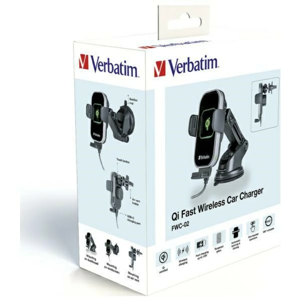 - Termék neve: Verbatim FWC-02 15W Qi vezeték nélküli töltés autós tartó