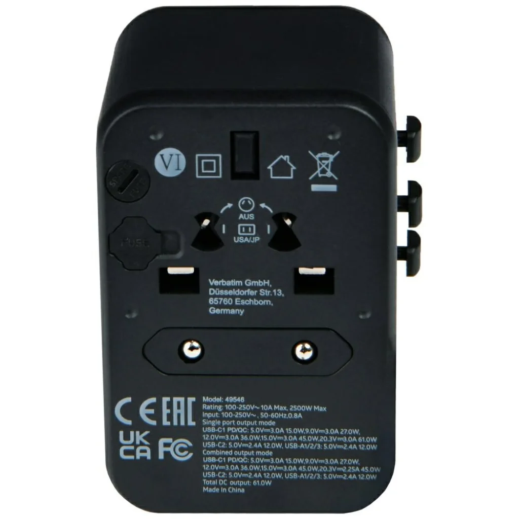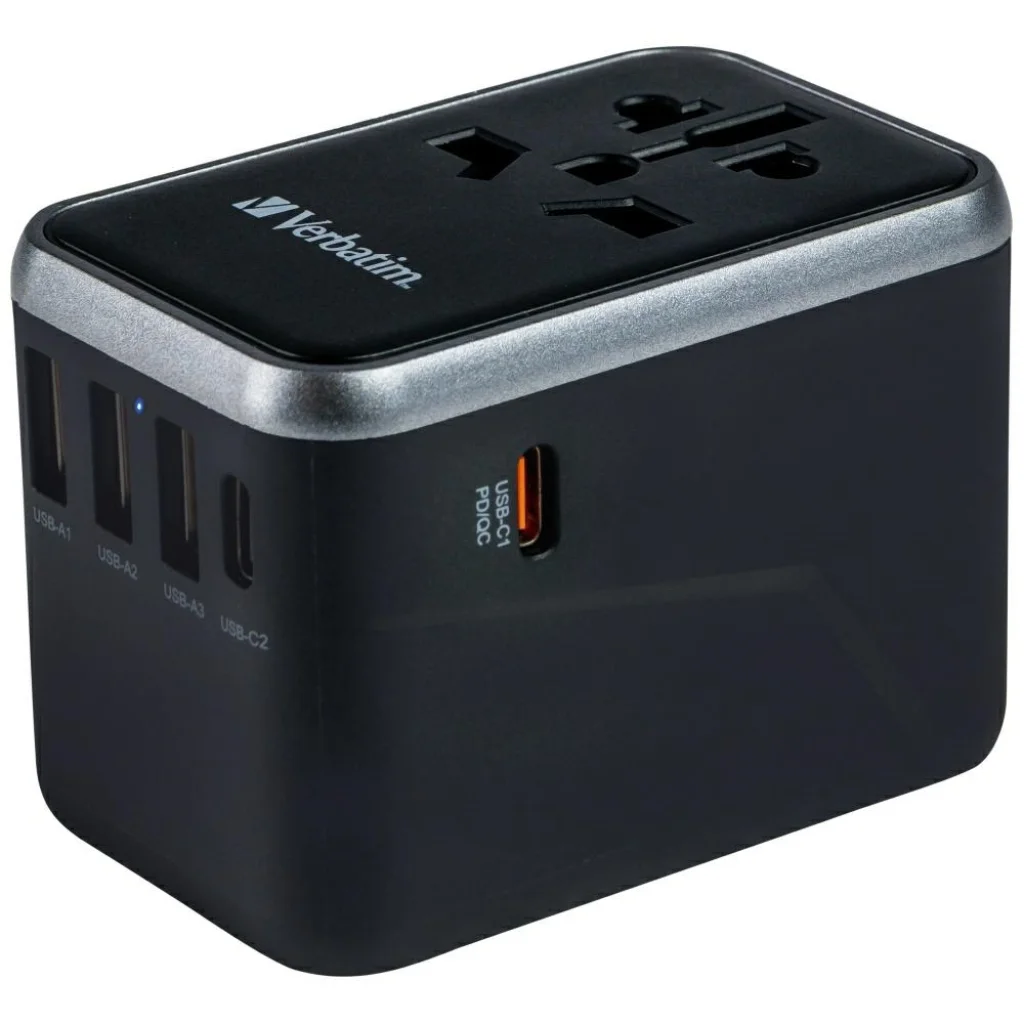 Verbatim Travel Adapter – Globális Utazó Adapter. A Verbatim univerzális utazó adapter megbízható megoldás utazók számára, több mint 180 országban működik. Vigye magával, és ne aggódjon az áram ellátás miatt. A globális adapter lehetővé teszi, hogy bármilyen helyi áramforrásba csatlakoztassa a készülékét világszerte. Ezzel könnyedén feltöltheti laptopját, kamera akkumulátorait és más energiaigényes készülékeket. Ezenkívül az eszköz alján található USB-A és USB-C portok lehetővé teszik az összes USB-eszköz, beleértve az okostelefonok, Bluetooth hangszórók, táblagépek, külső akkumulátorok és e-könyv olvasók töltését.
