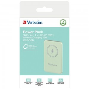 A Verbatim Charge'n'Go power bankok sokoldalúságra és kényelemre lettek tervezve, így tökéletes eszközök a mindennapi használatra. A 15W-os mágneses vezeték nélküli töltéssel és PD20W technológiával a Charge'n'Go gyors és hatékony töltést biztosít különféle eszközök számára. A mágneses rögzítés lehetővé teszi az egyszerű csatlakozást a telefonhoz, így a vezeték nélküli töltés útközben is lehetséges. A power bank kompakt és könnyű kialakítása lehetővé teszi, hogy könnyen hordozható legyen a zsebben vagy a táskában, biztosítva a mobilitást és a kényelmes használatot.