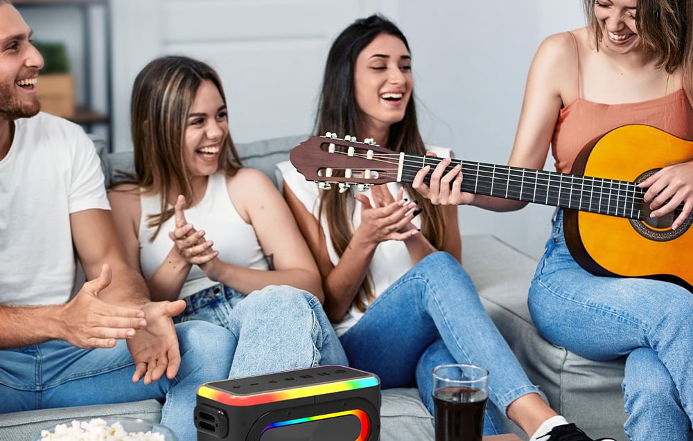 Az RGB fények nemcsak esztétikai varázst adnak a hangszórónak, hanem egyedi atmoszférát teremtenek a zenehallgatás vagy karaoke éneklés során. A színek és világítási effektek hangulatnak vagy zenei ritmusnak megfelelő változtatási lehetősége minden zenei foglalkozást még varázslatosabbá tesz.