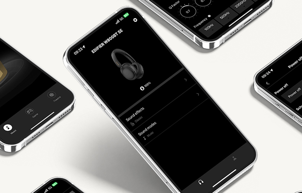 Személyre szabás az Edifier ConneX segítségével: Töltse le az Edifier ConneX alkalmazást, és szabja testre a hangélményt. Választhat az előre beállított Equalizer beállítások közül, vagy létrehozhatja saját hangprofilját, minden paramétert a saját preferenciáihoz igazítva. Az alkalmazásból ráadásul ütemezheti a fejhallgató automatikus kikapcsolását, vagy megkeresheti, ha elveszíti.