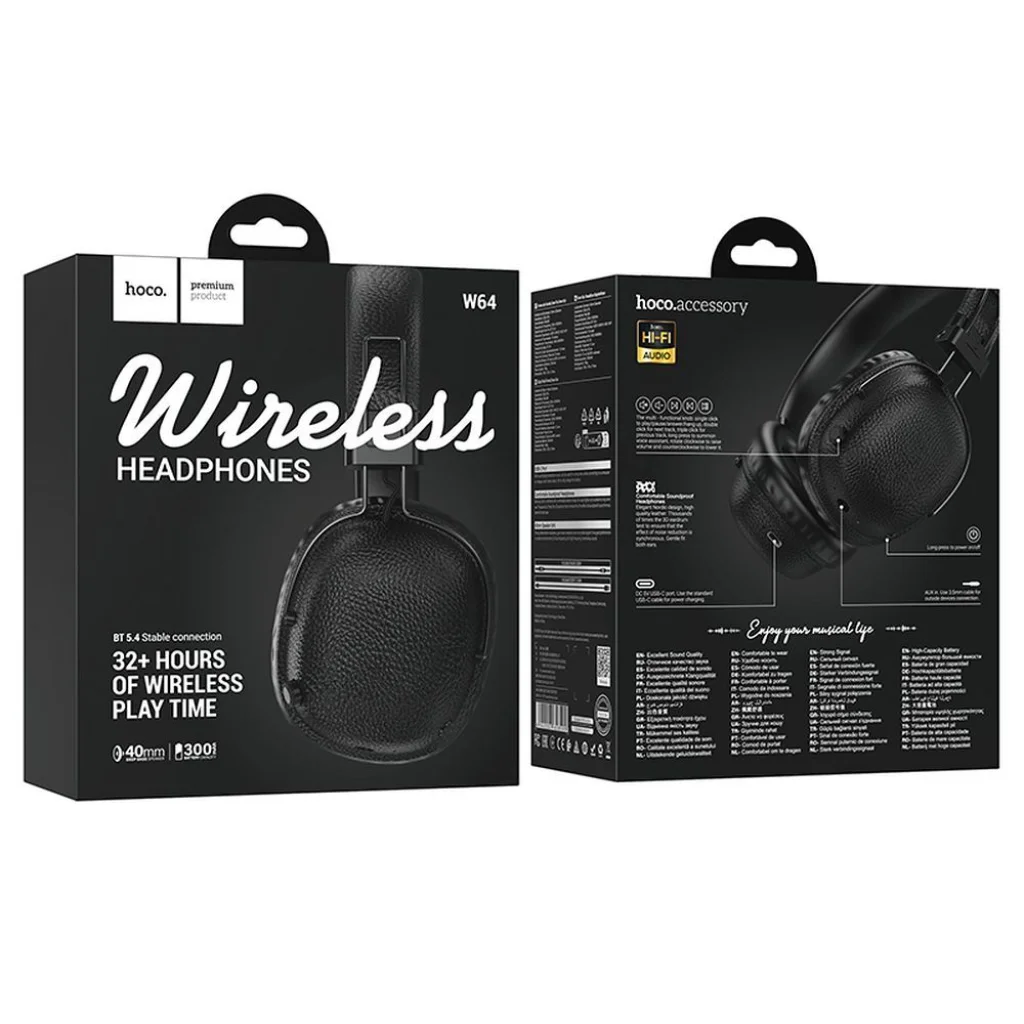 HOCO W64 Hordozható Bluetooth fejhallgató. Kiváló minőségű, tiszta hangzást biztosítanak mély basszussal. A vezeték nélküli Bluetooth streamelés lehetővé teszi, hogy kedvenc zenéidet kiváló minőségben élvezhesd, kábel nélkül. Az összecsukható kialakítás egyszerűvé teszi a fejhallgató hordozását és tárolását egy hátizsákban vagy táskában. A kényelmes fülpárnák lehetővé teszik, hogy órákon át zenét hallgass kényelmetlen érzés nélkül. Állítható - a fejhallgató könnyedén állítható egyéni igényekhez. A beépített gomb lehetővé teszi a lejátszott hang vezérlését. AUX csatlakozóval felszerelve. Specifikáció:
