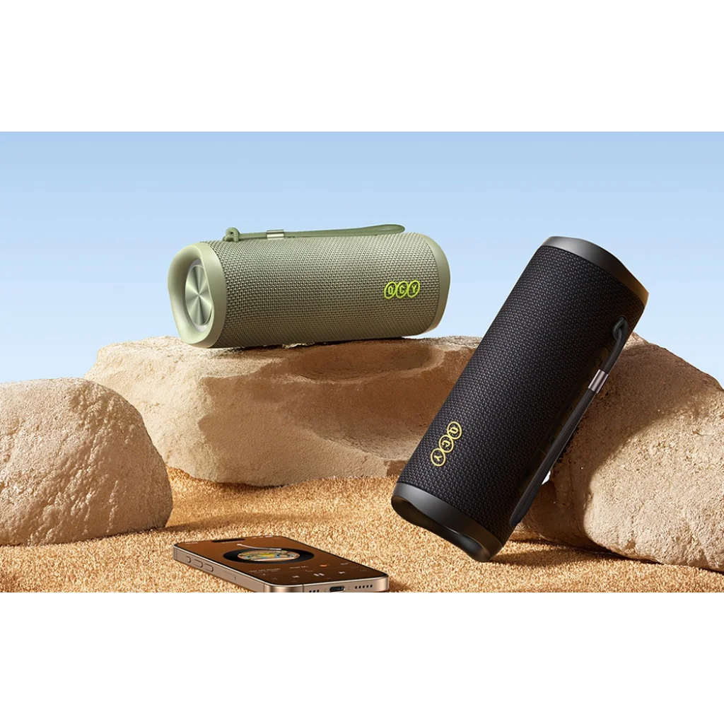 A tartós kialakítás, az alumínium nyakpánt tartó és a fonott szíj a QCY SP7 hangszórót rendkívül hordozhatóvá és minden alkalomra késznek teszi. Vigye magával bárhová, és hagyja, hogy a tökéletes hangzás mindig elkísérje Önt. Modernista dizájnja tökéletesen illeszkedik bármilyen térbe, esztétikus kiegészítője lesz egy rendezvénynek - akár otthon, akár a szabadban. Válassza a QCY SP7-et, és fedezze fel, milyen az igazi zenei erő!
