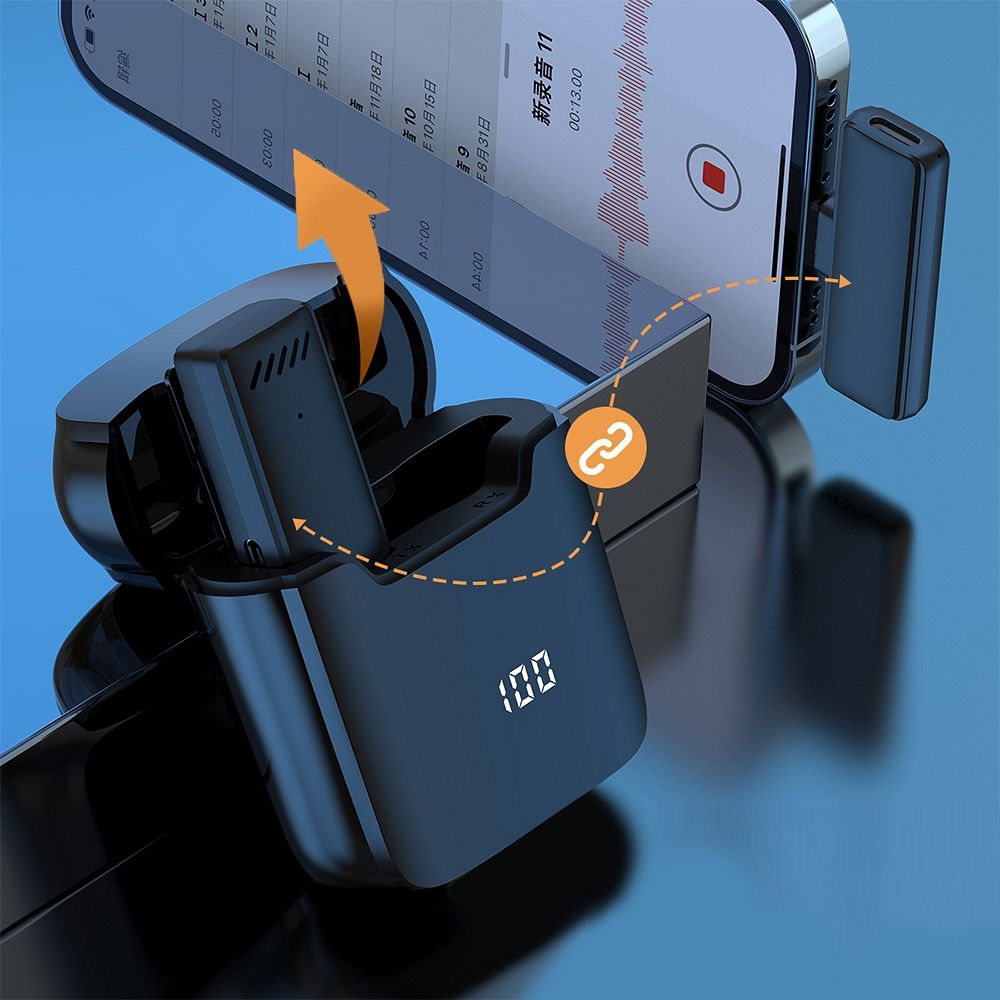 A vezeték nélküli mikrofon USB-C csatlakozóval egy olyan eszköz, amely segít felvételeket készíteni mind kültéren, mind beltéren. Kompakt formája és a ruhákhoz való rögzíthetősége alkalmassá teszi vlogok készítéséhez, adások vagy interjúk elkészítéséhez. A LED kijelzővel ellátott töltőtok is tartozék. Készíts jelentéseket és vlogokat a közösségi médiára, vezess adásokat, vagy beszélgess vendégekkel interjúk során. A vezeték nélküli mikrofon aktív zajcsökkentéssel és tiszta, éles hangzással lehetővé teszi, hogy kiváló minőségű hanganyagokat rögzíts csupán a telefonod segítségével. Egyszerűen csatlakoztasd a 20 méteres hatótávú vevőt az USB-C porthoz, és rögzítsd a mikrofonokat a ruháidhoz a csipesszel. A Plug & Play funkció révén a készülék azonnal használatra kész, amint csatlakoztatod a telefonhoz.