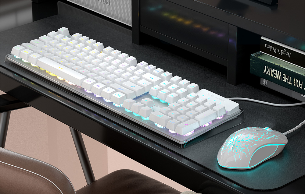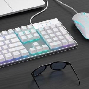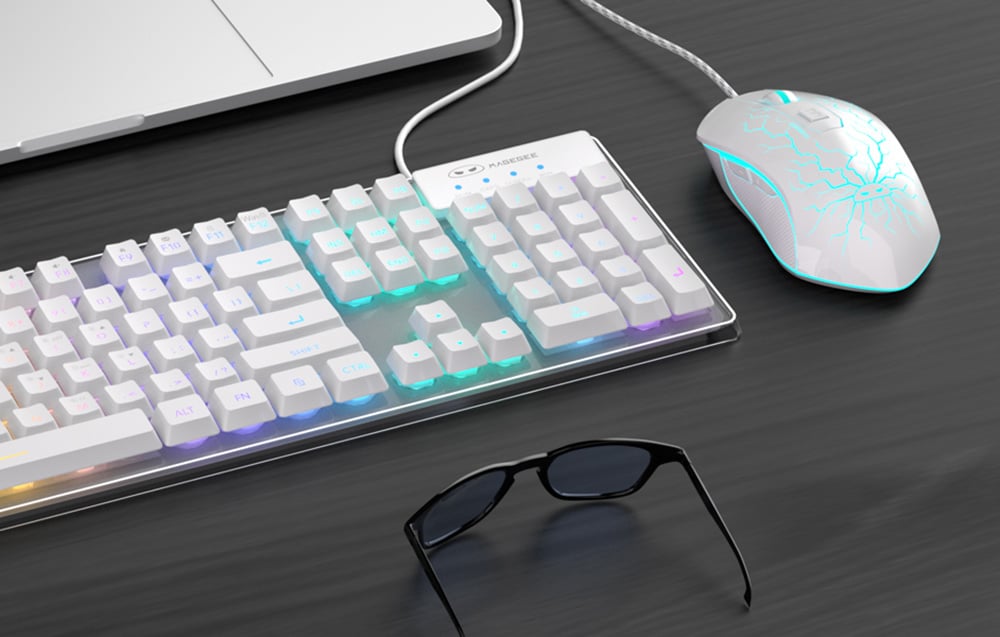 MageGee K1 vezetékes billentyűzet + egér szett (fehér) Ismerd meg a MageGee K1 készletet, amely kényelmet, teljesítményt és kivételes stílust biztosít játék és munka közben. Ez egy teljes méretű billentyűzet RGB háttérvilágítással és egy precíziós egér kombinációja, amelyek együtt tökéletes párost alkotnak mind intenzív játékhoz, mind mindennapos használatra.