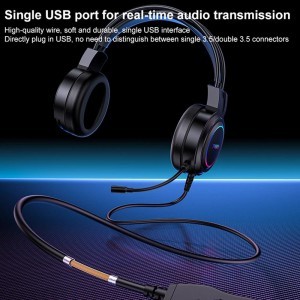 Yesido EK05 vezetékes gamer fejhallgató – Játékhoz, USB, mikrofonnal, RGB LED világítással – Fekete