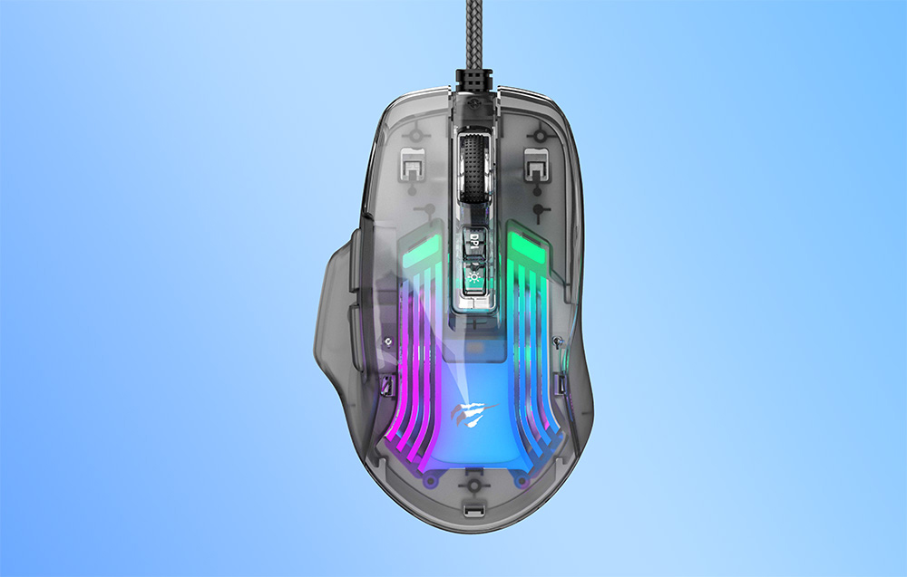 RGB világítási effektek: A Havit MS1011SE egér lenyűgöző 13 RGB háttérvilágítási móddal rendelkezik, köztük olyan effektekkel, mint a lehelet, a vízesés, a neon, a hullámok és a gombok reakciómódjai. A LED-gomb segítségével a felhasználók könnyedén változtathatják a háttérvilágítási módokat a játékállomásuknak megfelelően. A világítás kikapcsolásának lehetősége a DPI-gomb hosszú lenyomásával teljes körű ellenőrzést biztosít az eszköz megjelenése felett.