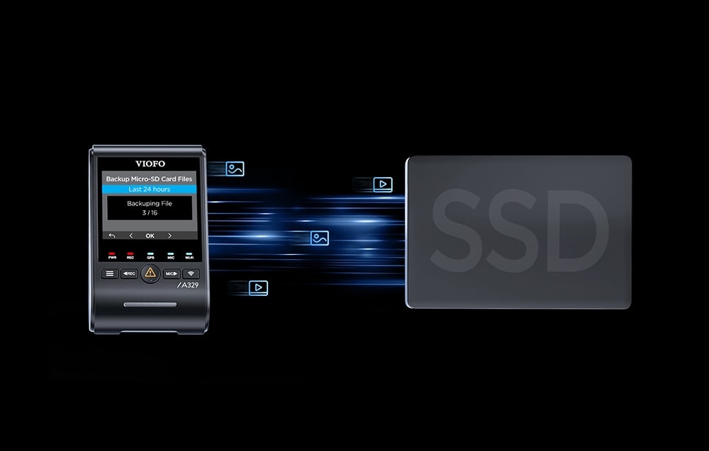 A VIOFO A329 az első olyan DVR, amely támogatja a külső SSD-meghajtókat. Ez a megoldás lehetővé teszi a több mint háromhetes napi útvonalak felvételeinek tárolását, kiküszöbölve a fájlok gyakori felülírásának szükségességét. Ráadásul az SD-kártyáról SSD-lemezre történő biztonsági mentés megvédi a legfontosabb adatokat, csökkentve a létfontosságú felvételek elvesztésének kockázatát.