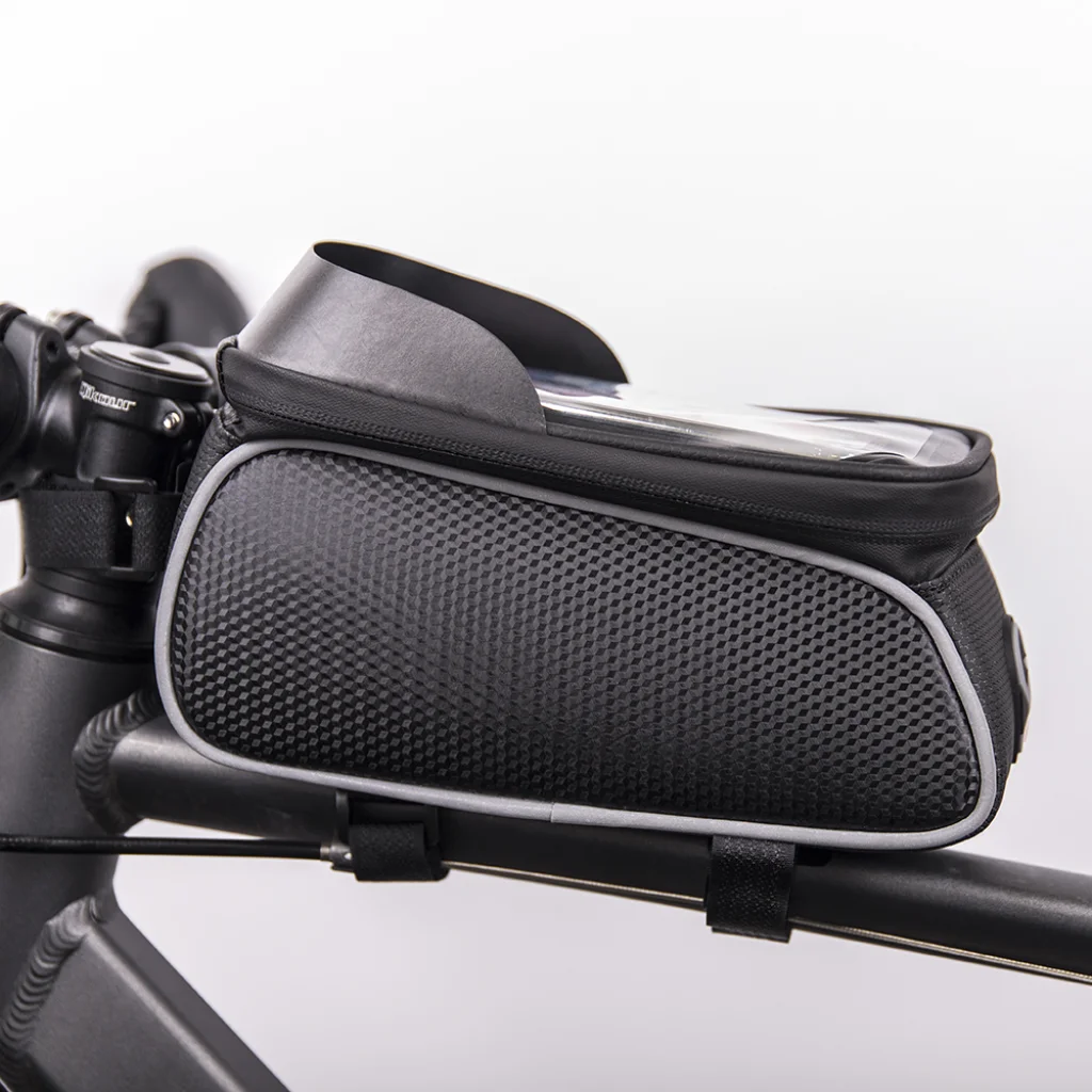 A vízálló biciklis táska lehetővé teszi, hogy kényelmesen használja telefonját vagy GPS-ét kerékpározás közben, még esős időben is. A táska felszerelése gyors és egyszerű - nincs szükség szerszámokra. A tapintás-vezető fóliának köszönhetően használhatja az érintőképernyőt anélkül, hogy ki kellene vennie a telefont a táskából. A termék nemcsak a kerékpár kormányára szerelhető fel, hanem babakocsira, futópadra, motorkerékpár vagy robogó kormányfogantyúira is, biztosítva a biztonságot a fényvisszaverő elemeknek köszönhetően. A telefon számára fenntartott hely mérete 17 x 9 cm, az ablak mérete 9 x 16 cm.
