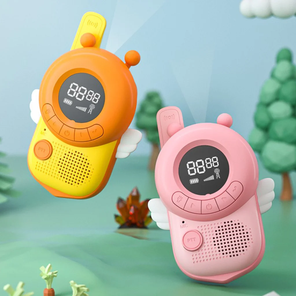 Karcsú, élénk színű gyerekeknek készült walkie talkie szuper aranyos nyuszis dizájnnal, amely vonzó a lányoknak és fiúknak egyaránt. Tartós és nem mérgező ABS műanyag anyagból készült, és 0,5W átviteli teljesítménnyel rendelkezik, ami nagyon alacsony sugárzást biztosít, 100%-ban biztonságos a gyermekek számára. Kiválóan alkalmas beltéri és kültéri használatra is. Minden vevő 4 AAA elemmel működik (tartozék).