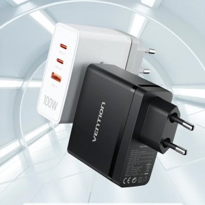 Töltő, Vention, FEGW0-EU, 2xUSB-C, USB-A, 100W/100W/30W, GaN (fehér)