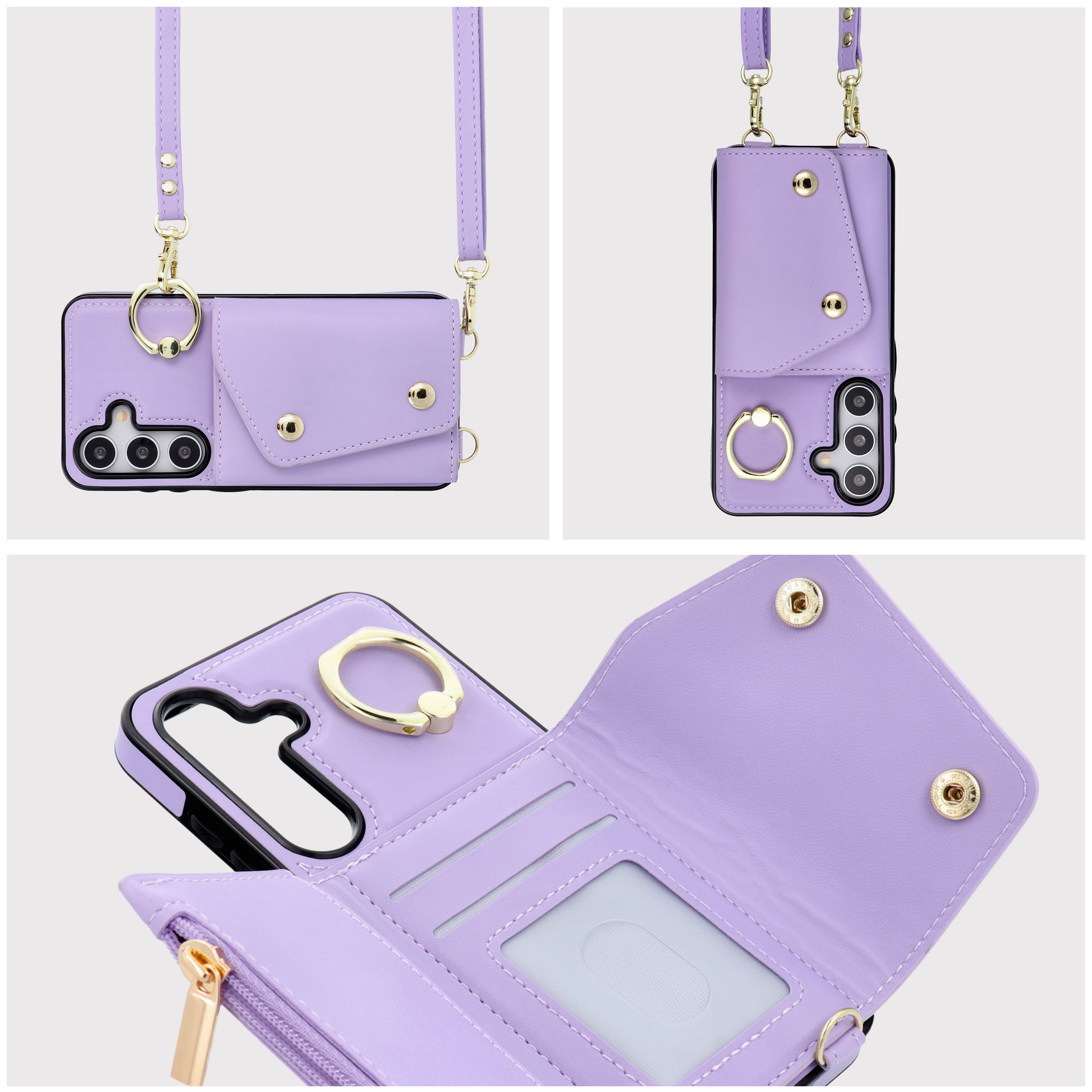 A tok hátoldalán található egy tágas zseb, ahová hitelkártyákat, készpénzt vagy dokumentumokat lehet tárolni. A belső rekesz, amely egy átlátszó ablakkal rendelkezik, ideális személyigazolvány vagy jogosítvány megjelenítésére. A kamerához közel helyezkedik el a gyűrűs tartó, ami az egykezes használatot könnyíti meg, és kihajtva állványként szolgál videónézéshez vagy video hívások lebonyolításához. A szett tartalmaz két pántot – egy rövidet kézben tartáshoz és egy hosszú, állítható vállpántot. Az erős fémkapcsoknak köszönhetően a telefon kényelmesen viselhető táskaként. A stílusos kivitelezés, arany díszítések és az átgondolt funkcióelrendezés miatt a Wonder tok kiváló választás azok számára, akik értékelik a kényelmet és eleganciát.