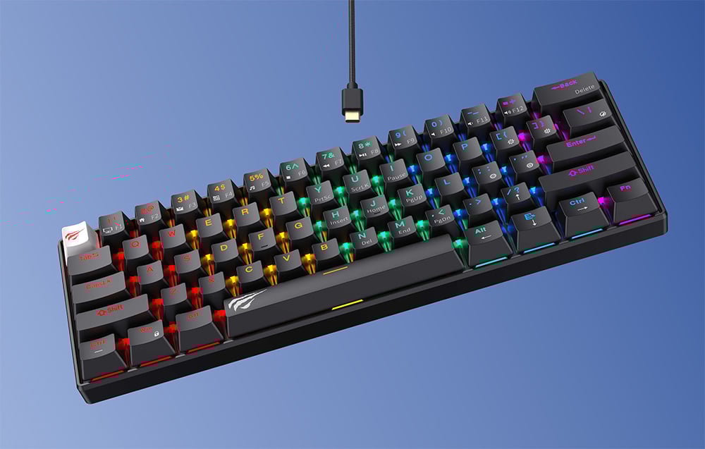 A Havit KB903L egy vezetékes mechanikus billentyűzet, amelyet játékosoknak és azoknak terveztek, akiknek fontos a pontosság és a kényelem. A 61 billentyűvel felszerelt, kompakt elrendezésű billentyűzet a funkcionalitás feláldozása nélkül takarít meg helyet az íróasztalon. Az USB-kábelen keresztül csatlakoztatott billentyűzet stabilitást és megbízható teljesítményt garantál, így kiváló választás játékhoz és mindennapi használatra egyaránt.