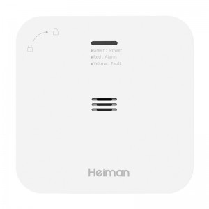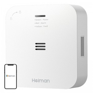 A Heiman HM-720ES-W egy intelligens szén-monoxid-érzékelő vezeték nélküli összekapcsolt modullal, amely megbízható védelmet nyújt otthon, szállodában, étteremben vagy ipari üzemben. Valós időben érzékeli a szén-monoxid jelenlétét, vészhelyzet esetén pedig 85 dB-es hangjelzést vált ki, és értesíti a többi csatlakoztatott eszközt. Az elektrokémiai érzékelő nagy pontosságú mérést és akár 10 éves élettartamot garantál. A készülék emellett öndiagnosztikai funkciót, alacsony feszültség riasztást és mobilalkalmazáson keresztüli vezérlési lehetőséget is kínál.