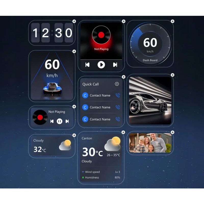 Játssz le filmeket, sorozatokat és videókat közvetlenül az autód képernyőjén a telepíthető alkalmazásoknak és a 256 GB-ig bővíthető TF kártya támogatásnak köszönhetően. Az adapter igazi mini TV-boxszá válik az autóban – ideális megoldás az utasoknak hosszú utazások során, vagy ha éppen várakoznod kell valahol. A testre szabható widgetekkel a fontos információk mindig szem előtt vannak, akár időjárás, sebesség vagy gyorshívás.