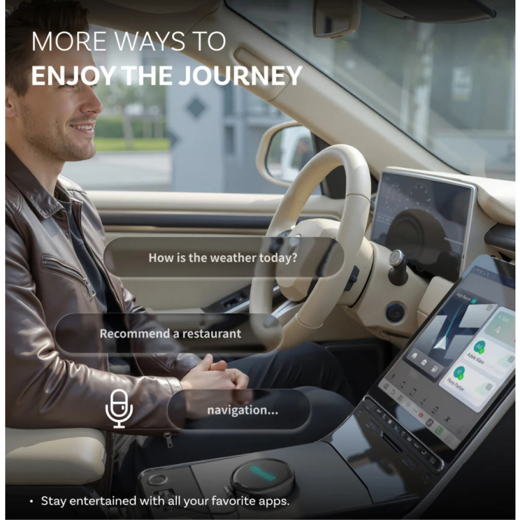 Vezeték nélküli kapcsolat és hangsegéd: Csatlakozzon vezeték nélkül a CarPlay-hez vagy az Android Auto-hoz néhány másodperc alatt a navigáció, hívások és zene érdekében, majd váltson egy érintéssel az OttoDrive OS 3.0-ra, hogy teljes körű hozzáférést nyerjen az alkalmazásaihoz. A térképek, üzenetek és lejátszási listák automatikusan elindulnak minden utazás során, megkönnyítve minden reggelt. Az AI hangsegéd elősegíti a biztonságos vezetést, navigációs parancsokra, zenelejátszásra vagy helykeresésre válaszolva, anélkül hogy el kellene engednie a kormányt. Kérjen útbaigazítást, dalokat vagy közeli éttermeket, és a segéd mindent elintéz, miközben Ön az útra koncentrál.