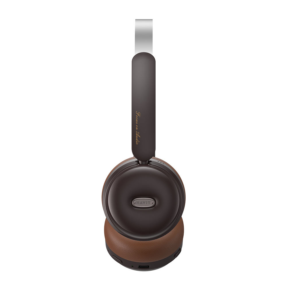 A Havit H616BT nem csupán egy fejhallgató, hanem egy stílusos kiegészítő is. A barna színvilág, a texturált fülkagylók és a matt fekete részletek modern és elegáns megjelenést kölcsönöznek neki. A "Focus on Audio" felirat a fejpánt oldalán nem csak egy esztétikai elem, hanem a Havit elkötelezettségét is jelzi a kiváló hangminőség iránt.