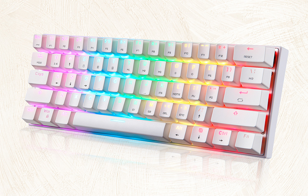 A Motospeed SK62 billentyűzet színes RGB háttérvilágítással van ellátva, ami egyedi karaktert kölcsönöz neki. Akár 16.8 millió szín közül választhatsz! Több mint 10 típusú állítható dinamikus háttérvilágítási effektus is van, így kiválaszthatod a számodra tökéleteset. Még több színes szórakozásért támogat egyéni módokat is.