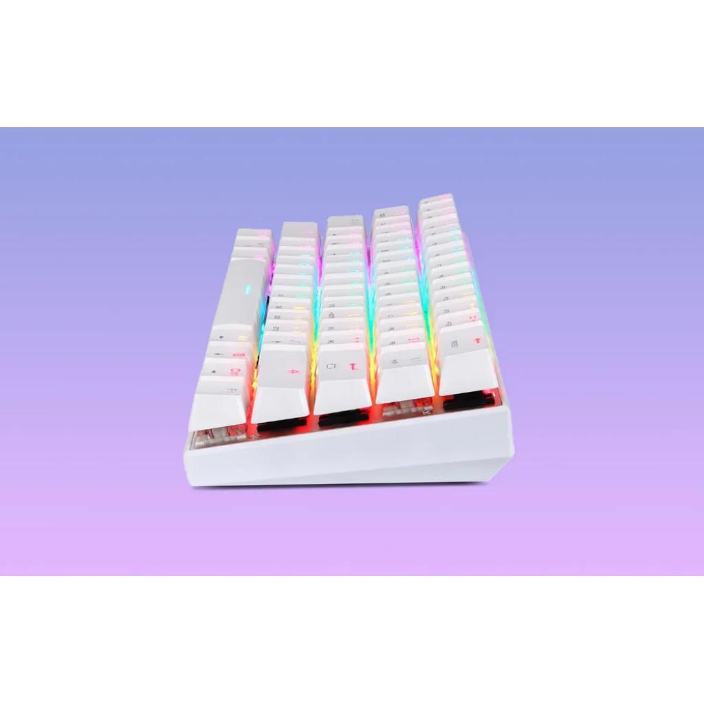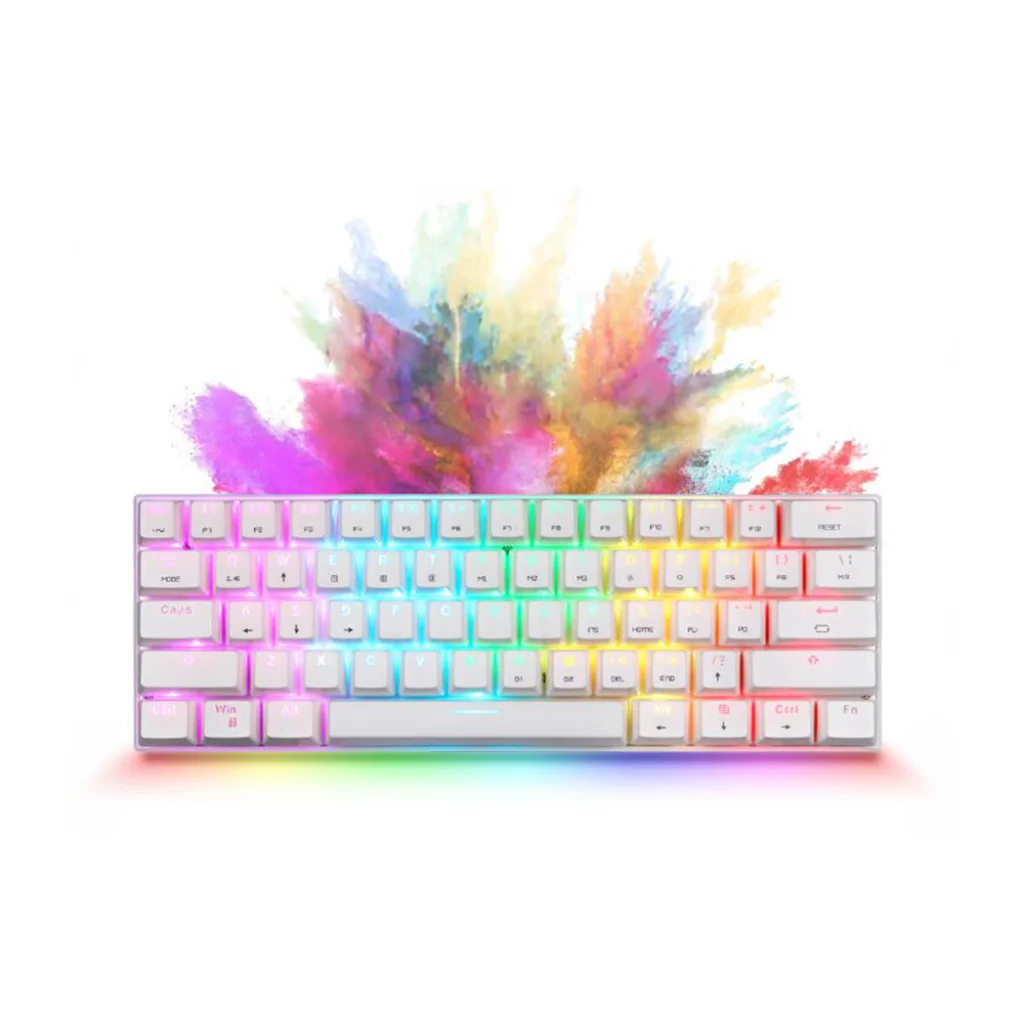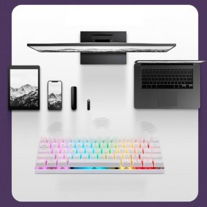A Motospeed SK62 úgy lett tervezve, hogy álmaid kényelmét biztosítsa. Az ergonomikus kialakítás garantálja a maximális kényelmet akár órákon át tartó számítógépes munka során. Funkcióbillentyűket is kínál, melyek lehetővé teszik a Bluetooth kapcsolt eszközök közötti váltást vagy a háttérvilágítás beállításainak megváltoztatását. Ráadásul az SK62 61 billentyűvel van felszerelve, amelyek OUTEMU kék kapcsolókat használnak. Jellemző rájuk a jellegzetes kattogó hang minden egyes billentyűlenyomáskor - tökéletes gépeléshez.