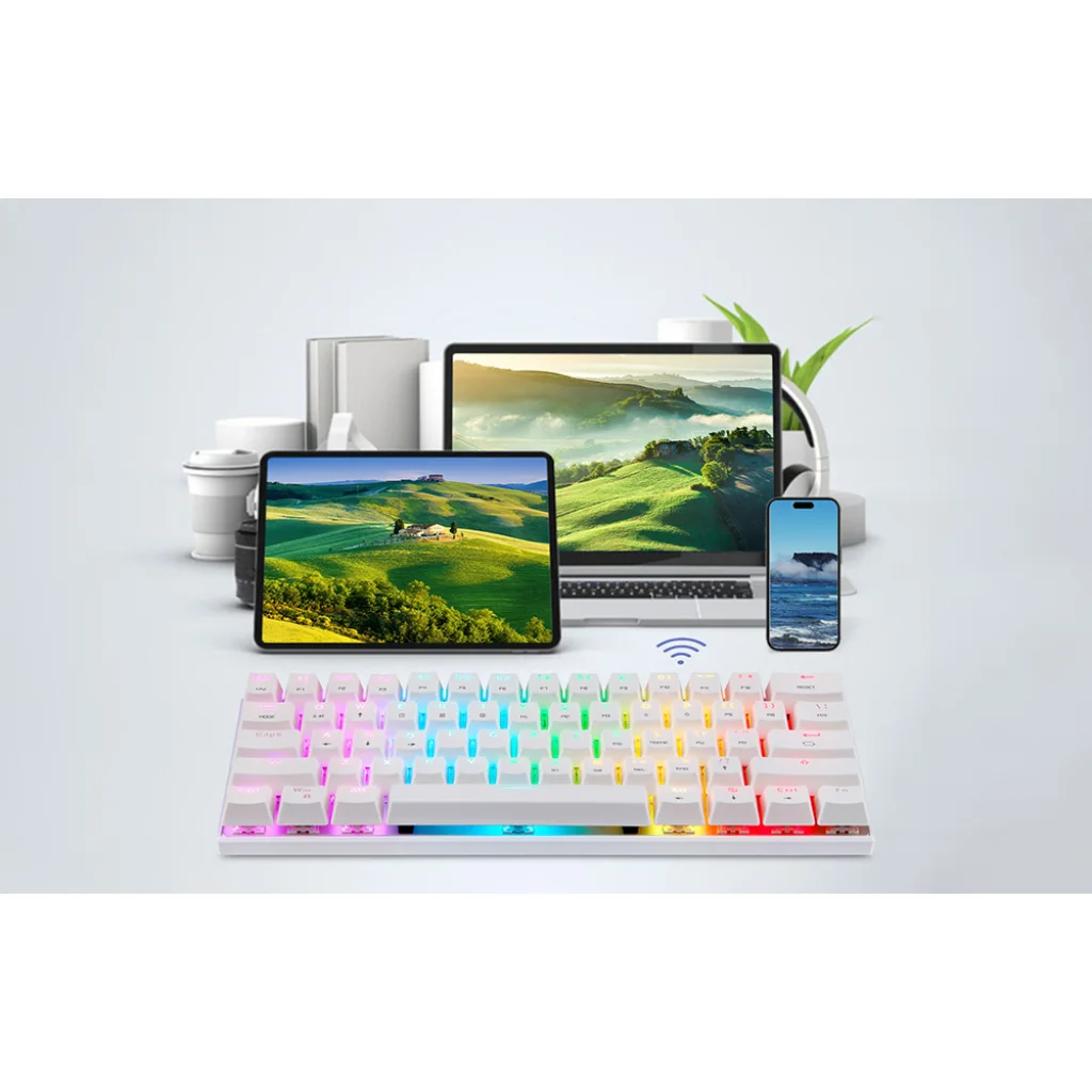 Motospeed SK62 vezeték nélküli mechanikus billentyűzet (kék kapcsolók). Olyan billentyűzetet keresel, ami egyaránt jól működik munkához és játékhoz? A Motospeed SK62 tökéletes lesz számodra! Akár 3 különböző csatlakozási lehetőséggel tűnik ki, és emellett színes RGB háttérvilágításával is lenyűgöz. Működési ideje akár 260 óra, így mindig készen áll, amikor csak szükséged van rá! Rendkívül kényelmes a használata is, ergonomikus kialakításának és 61 kék kapcsolós billentyűjének köszönhetően.