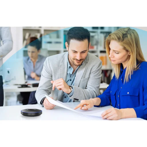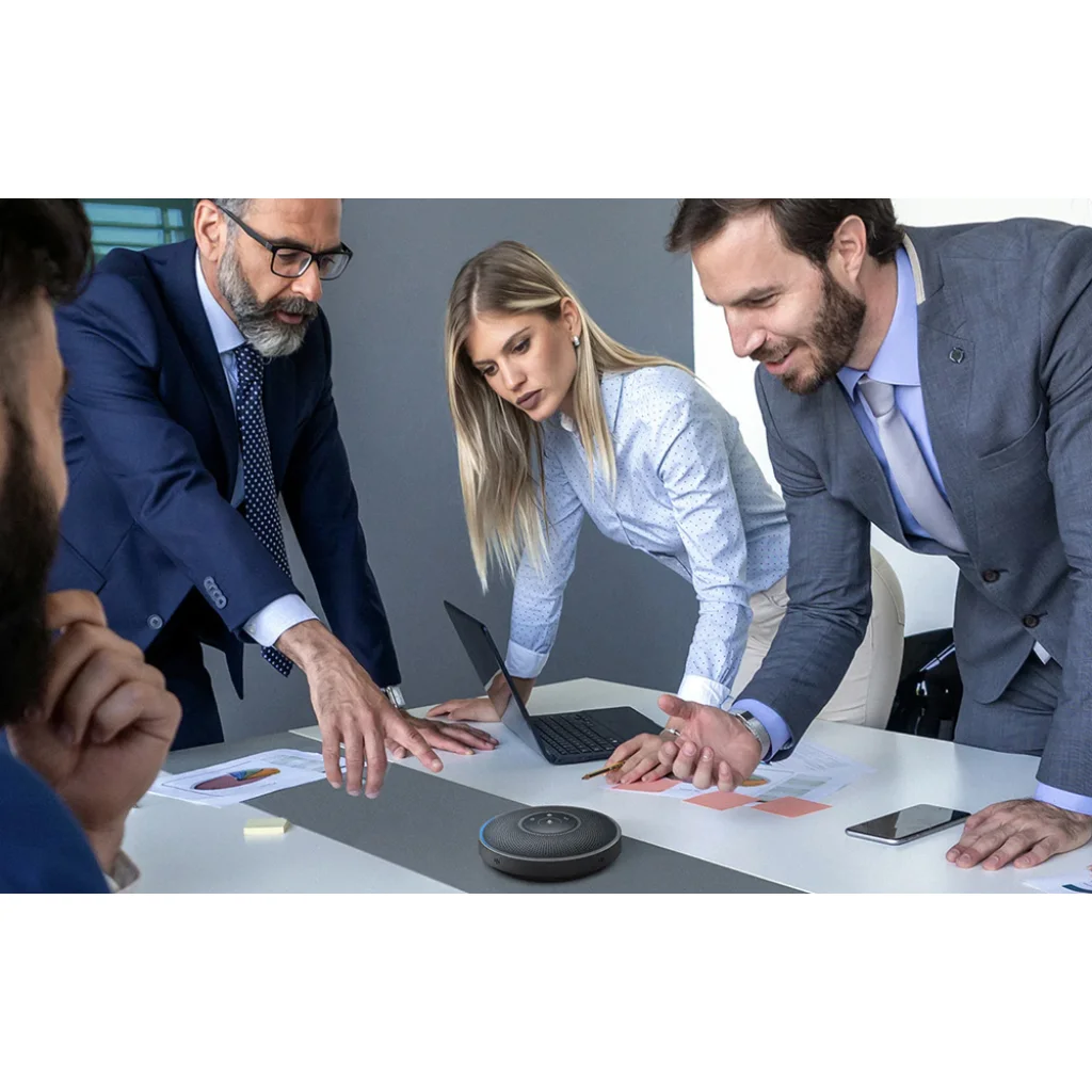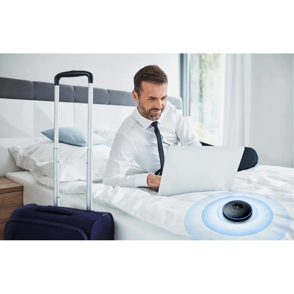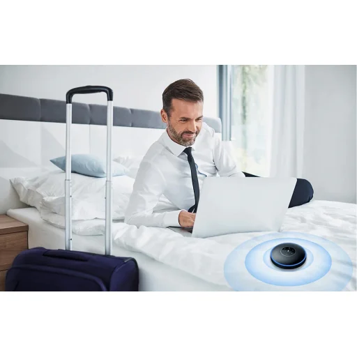 Könnyű súlya és kompakt kialakítása miatt a készülék könnyen elfér egy táskában vagy hátizsákban. A mellékelt hordtáska tovább könnyíti a szállítást és védi a berendezést útközben. A beépített akkumulátor lehetővé teszi a hangszóró használatát anélkül, hogy folyamatosan csatlakoztatni kellene egy áramforráshoz, így nagyobb szabadságot biztosít az értekezletek szervezéséhez különböző helyszíneken – nem csak az irodában, hanem otthon vagy utazás közben is.