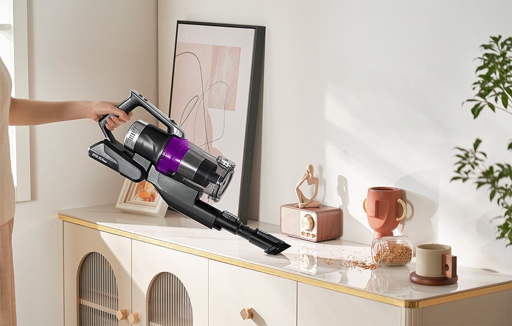 A készülék gyorsan átalakítható kézi porszívóvá, így ideális a padló feletti területek tisztításához. A készülékhez tartozik egy résfúvóka és egy kárpitos kefe, amelyek jól jönnek a kanapék, a függönyök vagy az autó belsejének tisztításakor. Minden tartozék kényelmesen tárolható a dokkolóállomáson, így mindig kéznél van.