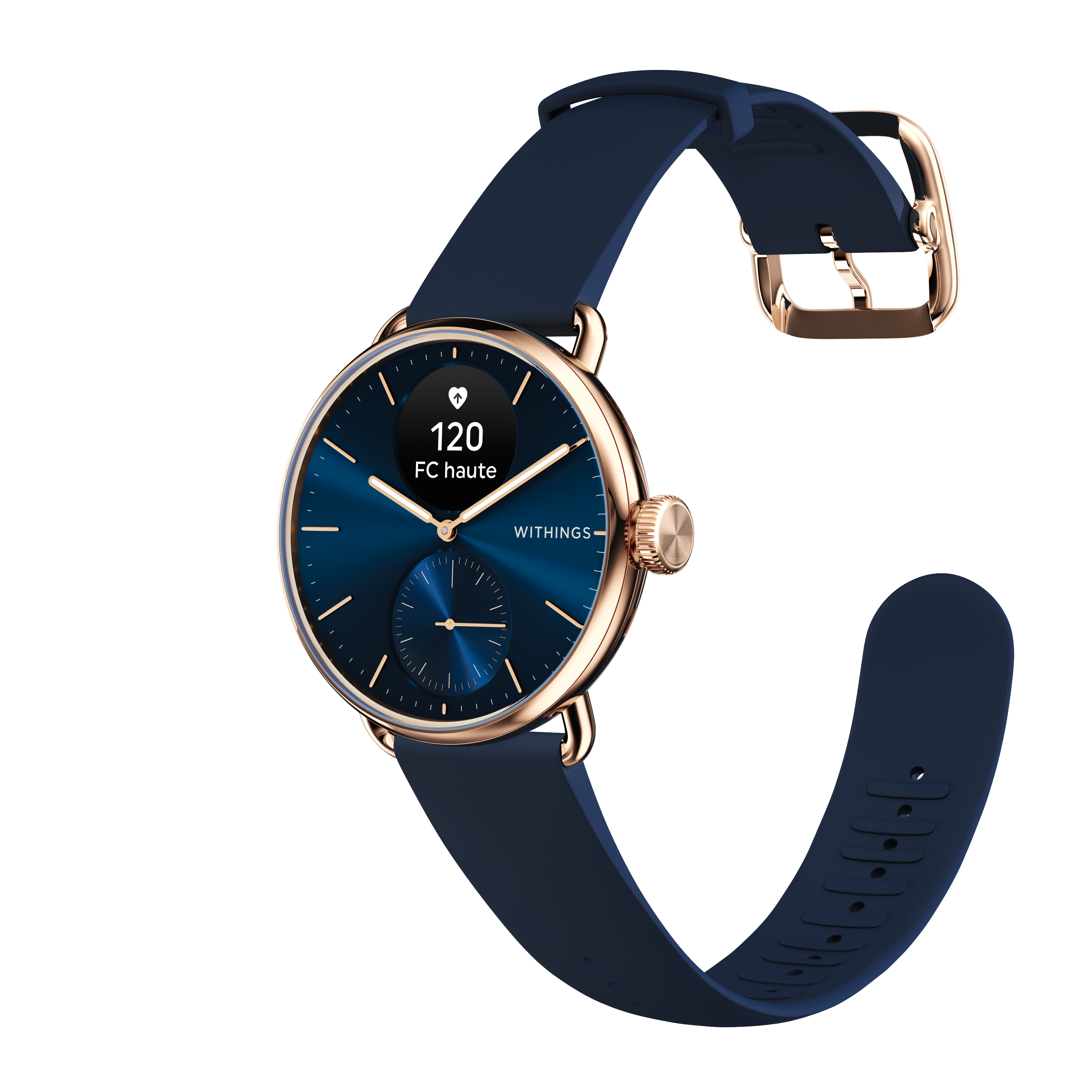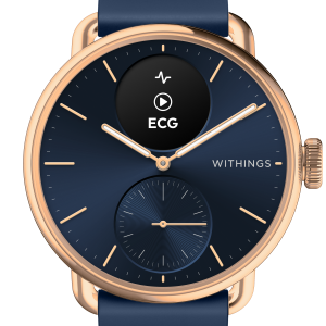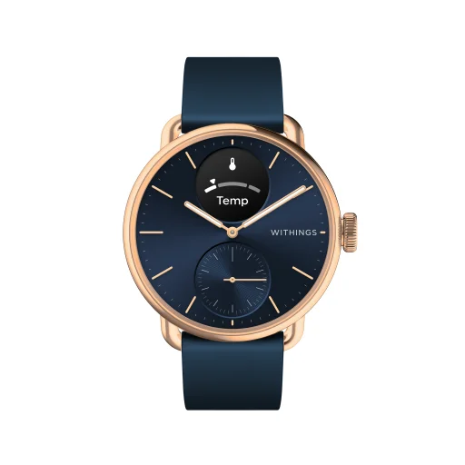 Ismerje meg a Withings Scanwatch 2-t, a hibrid okosórát, amely zökkenőmentesen ötvözi a klasszikus órák időtlen eleganciáját a modern egészségügyi technológia legfejlettebb funkcióival. Ez a 38 mm-es modell rozéarany rozsdamentes acél tokkal, mélykék számlappal és hozzá illő FKM csuklópánttal érkezik, stílusos és funkcionális kiegészítővé téve mindennapjait.